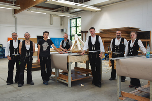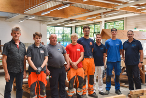 - Zimmerer/-innen beeindruckten mit der Erstellung eines gleichgeneigten Krüppelwalmmodells.