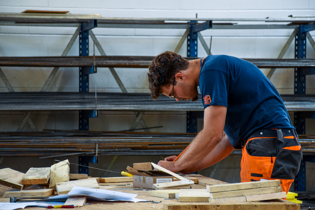 - Beton- und Stahlbetonbauer/-innen mussten eine präzise bewehrte Schalung für ein Fertigteil erstellen.